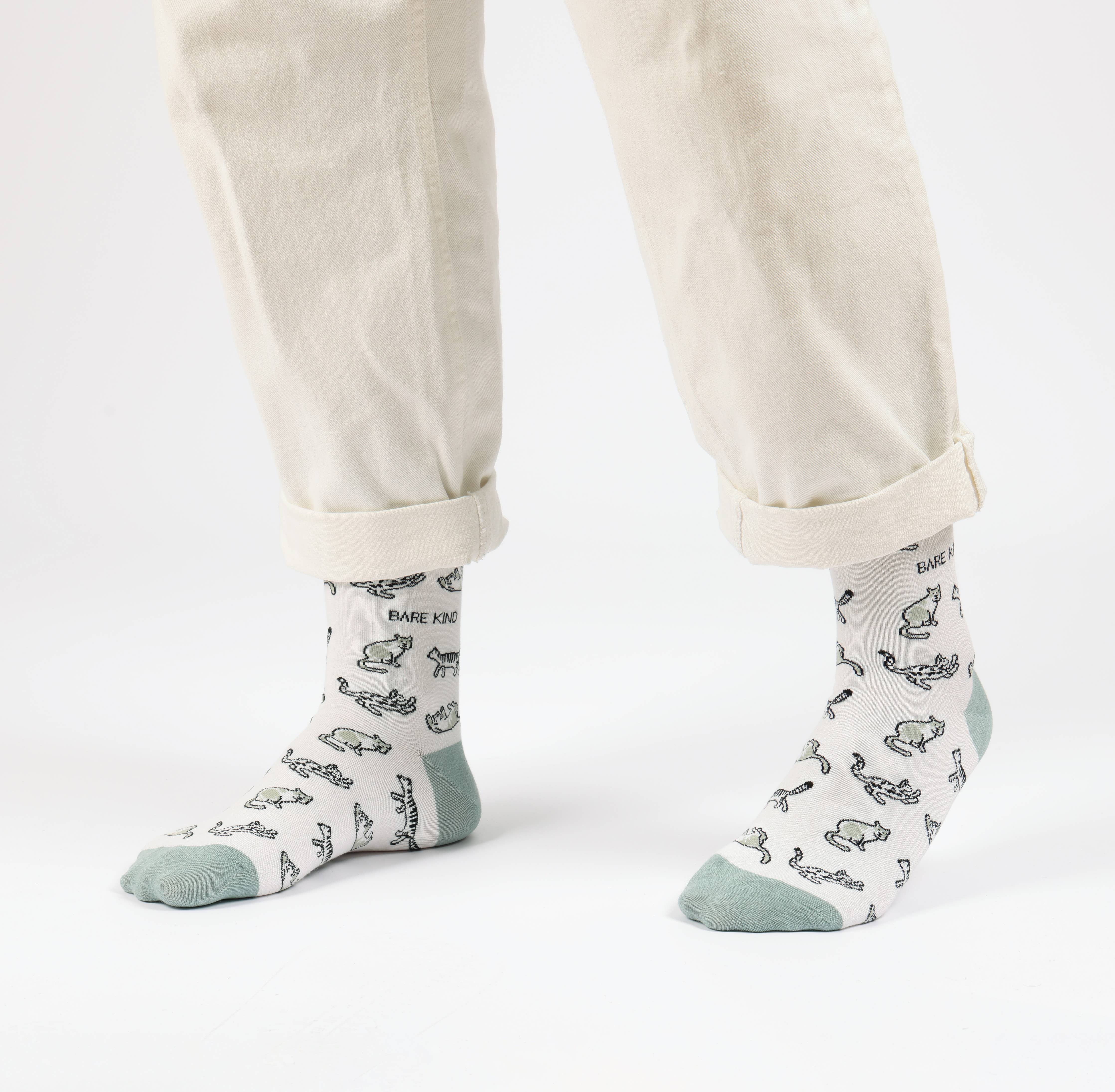 Cat Socks | Bamboo Socks | White & Green Socks
