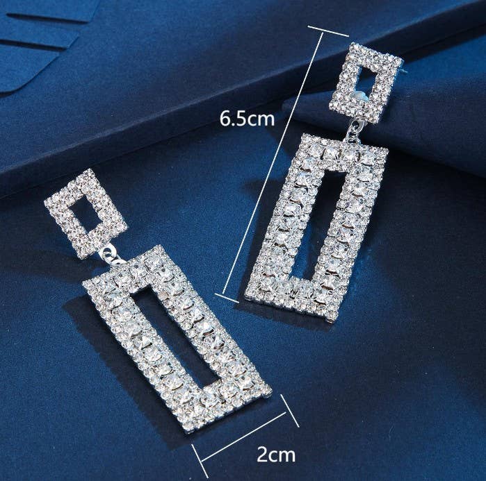 Crystal Embellished Rectangular Drop Earring in Silver