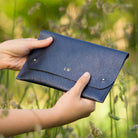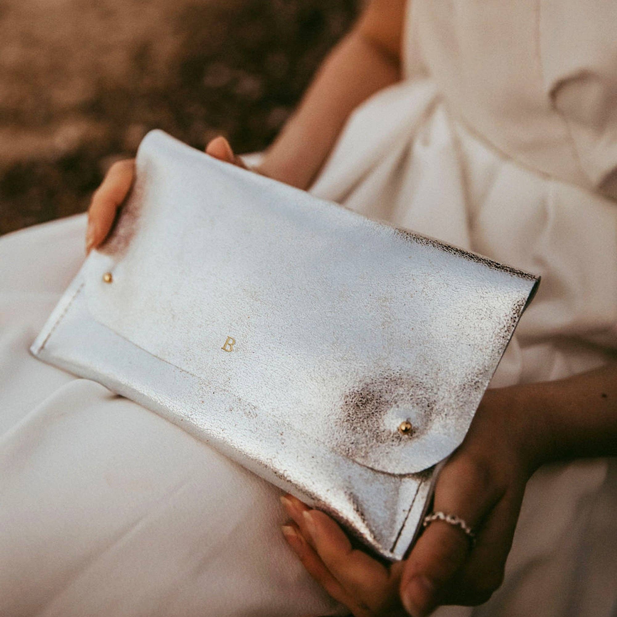 Our best selling, gold leather clutch bag now also comes as a gorgeous silver or navy clutch bag too. The leather is absolutely gorgeous, it's metallic finish captures the light beautifully while having a soft suede finish on the inside.