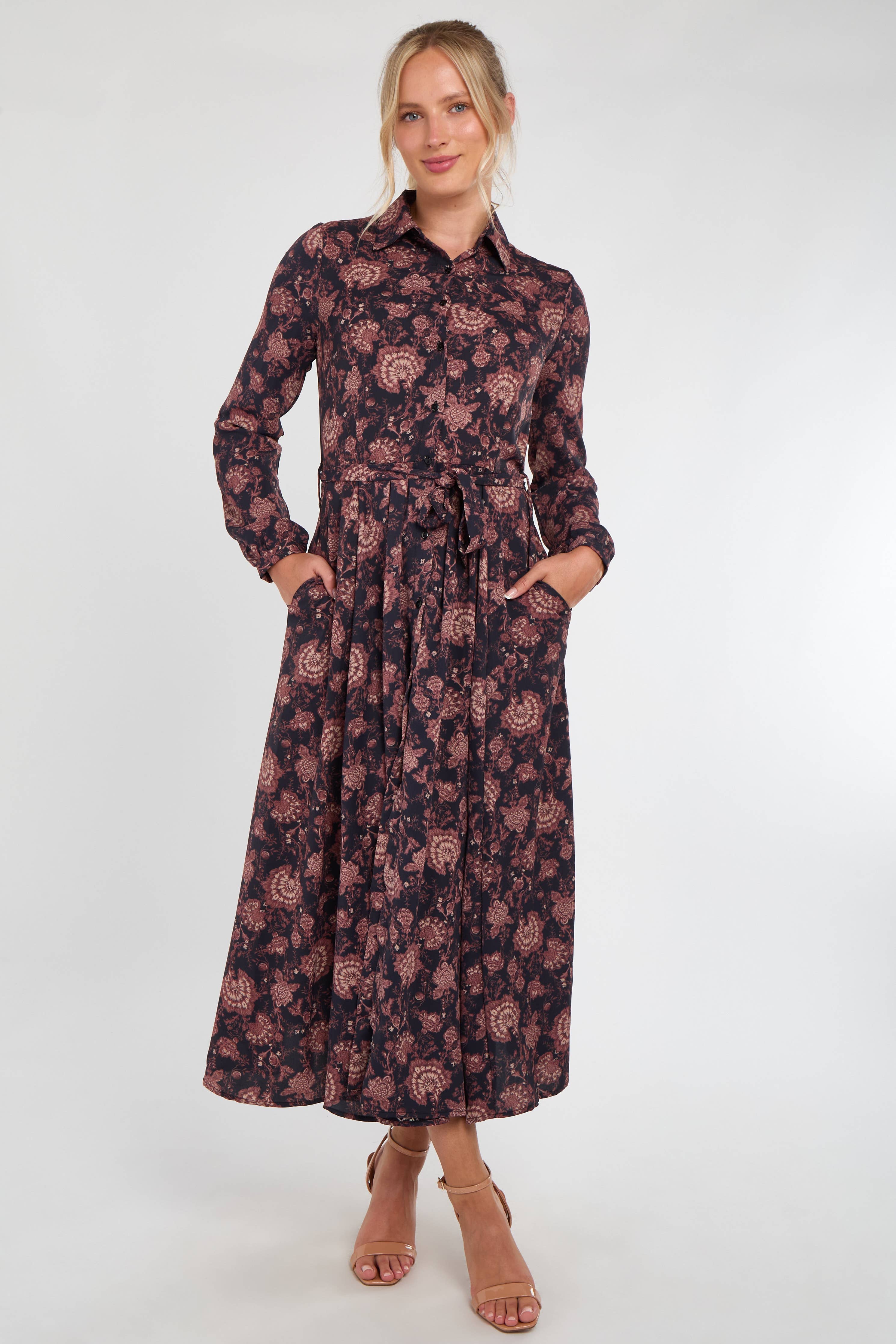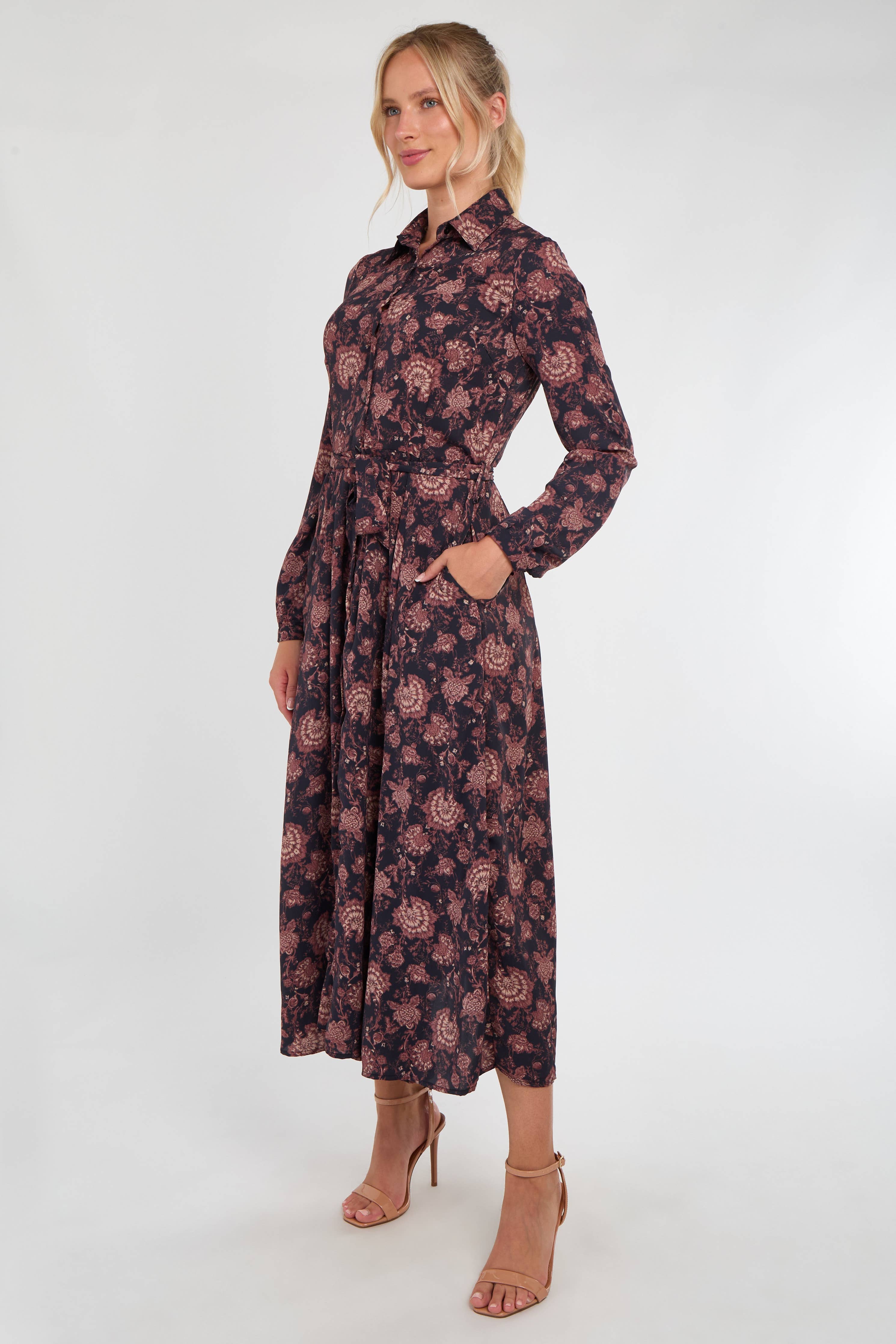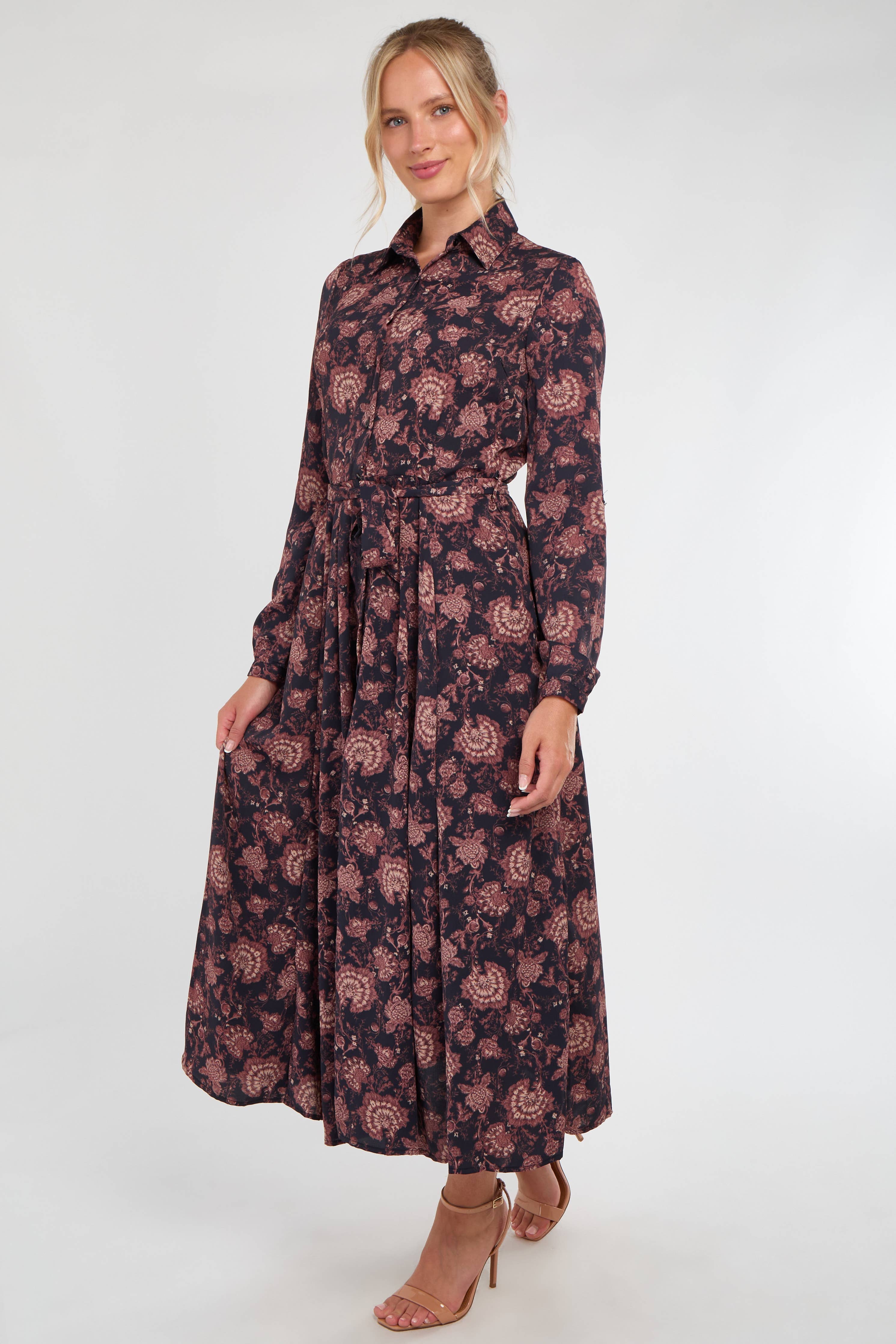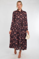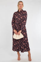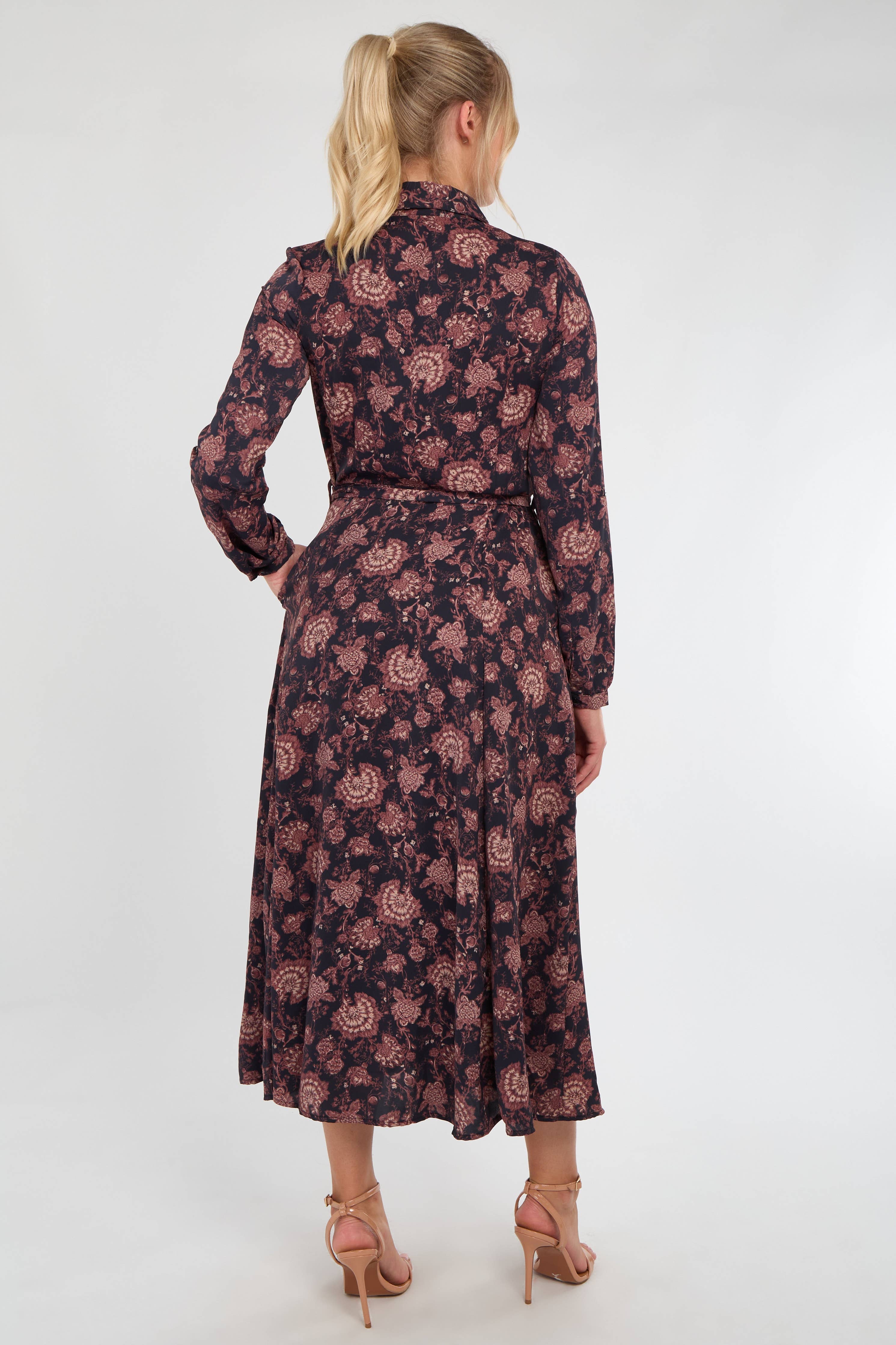 Navy and Berry Vintage Rose Print Midi Dress