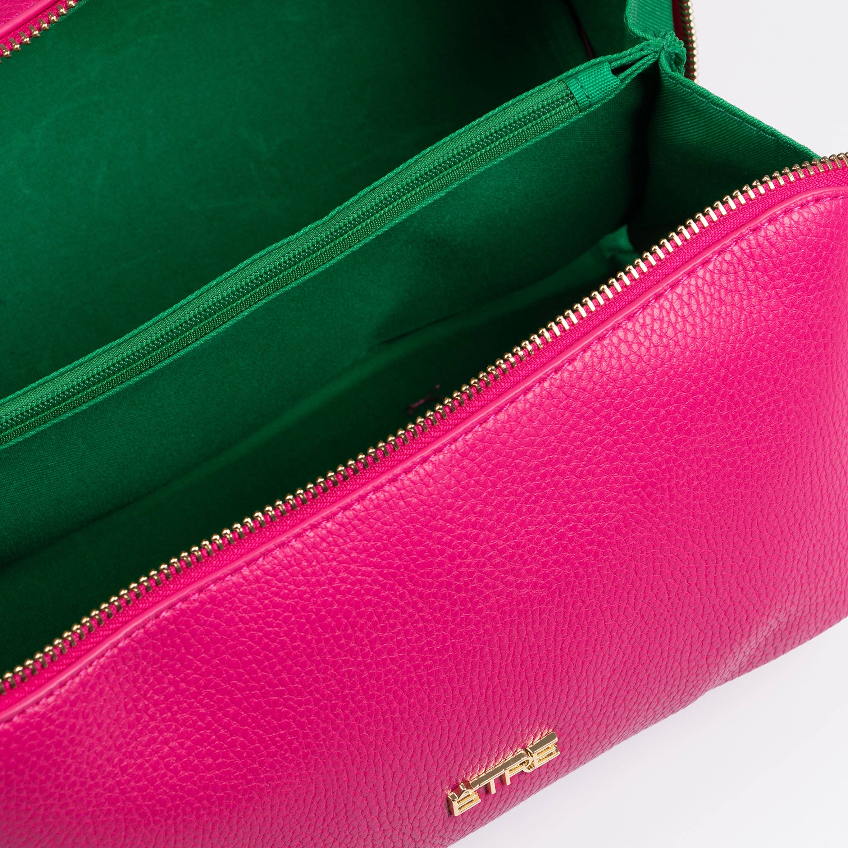 Perfect for travelling, cosmetics and toiletries. The Mila vanity case unfolds to reveal a spacious storage compartment. Featuring small internal pockets for organisation, this vanity case is ideal for travel. Crafted from pebbled faux leather and finished with a convenient top handle. Large storage compartment Inner pockets for storage Gold hardware.