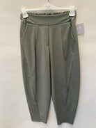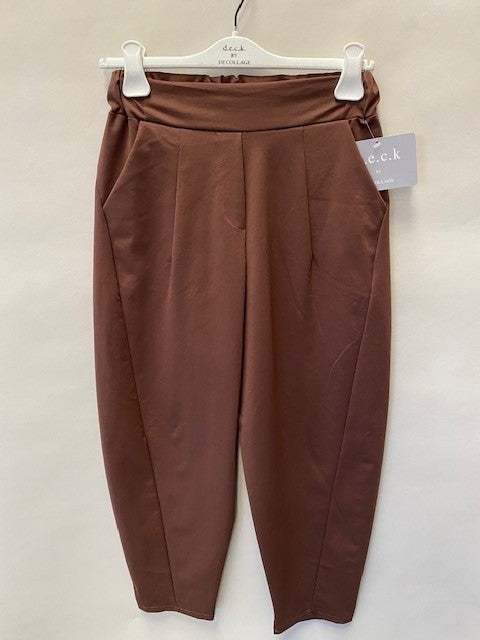 Barrel shaped trousers in choko or khaki.