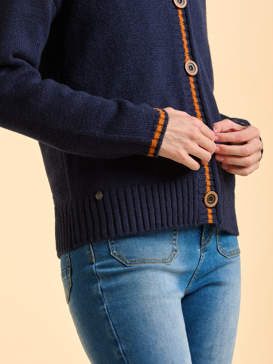 Chunky knit, easy fit, and just the right amount of rust orange to keep things interesting. Ribbed v-neck, cuffs, and two front pockets make it a practical pick for those slow, easy days. Slip it on with your favourite Brakeburn jeans and head out.