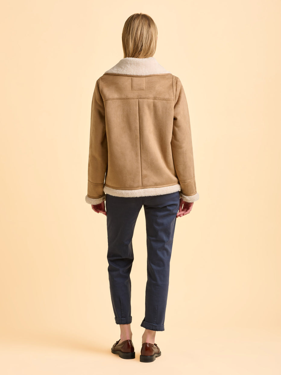 Channel classic cool with our Pine Jacket. Featuring a soft faux sheepskin lining and an iced-coffee coloured faux suede outer, it’s designed for cosy days ahead. With a versatile collar, two roomy front pockets, and subtle seam detailing on the cuffs, it’s effortlessly stylish with a laid-back feel.