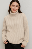 Ribbed Roll Neck Jumper with Folded Cuffs