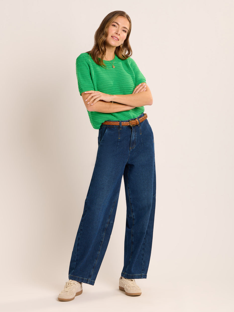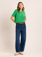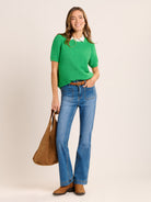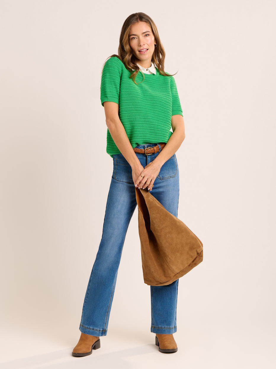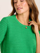 The Dawnish knitted T-Shirt is exactly what your wardrobe needs to welcome the spring sunshine. Ours is made from 100% cotton in a textured stripe stitch in bright spring green. A versatile style that can be worn from spring into summer, layer with a cami or T-Shirt for the cooler days.