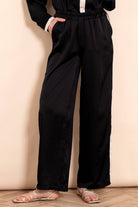 Crafted from soft, silky viscose these summer trousers look and feel luxurious. A classic black design with a bold cream contrast stripe. Featuring a flattering wide leg cut, elasticated waist and pockets.