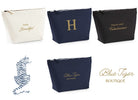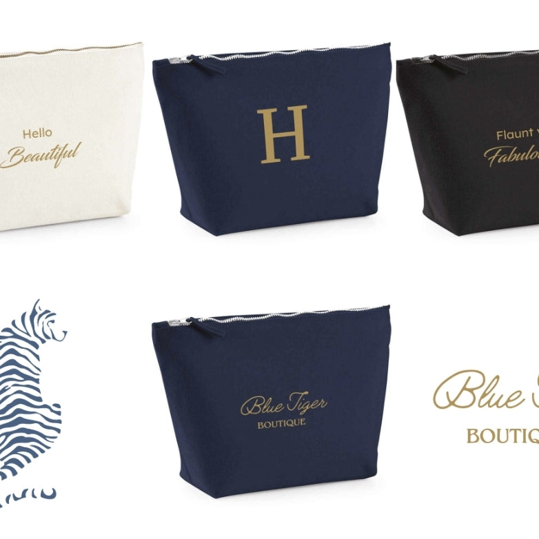 Choose from navy, cream or black with gold bag. Please place your order then we will be in touch to confirm your customisation.