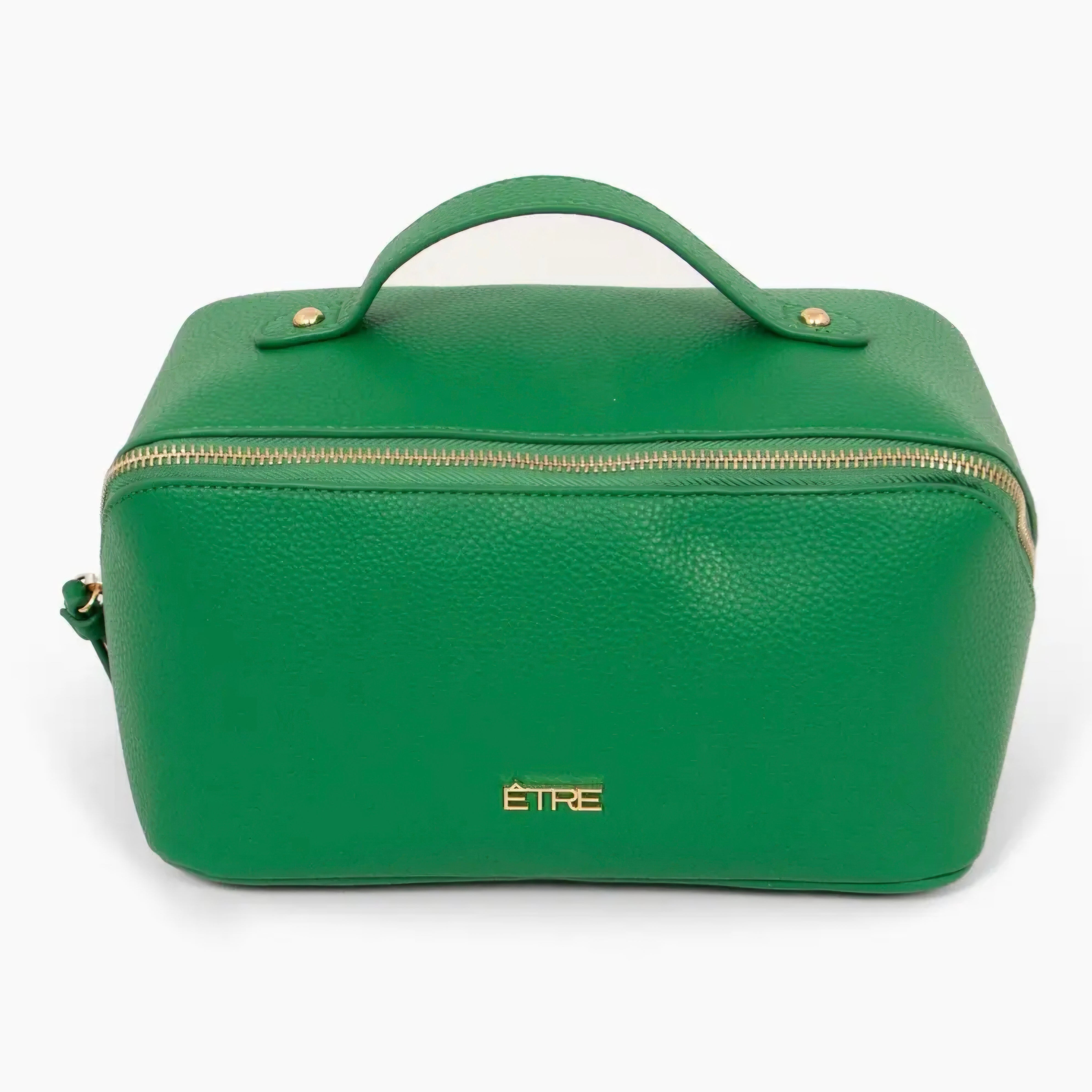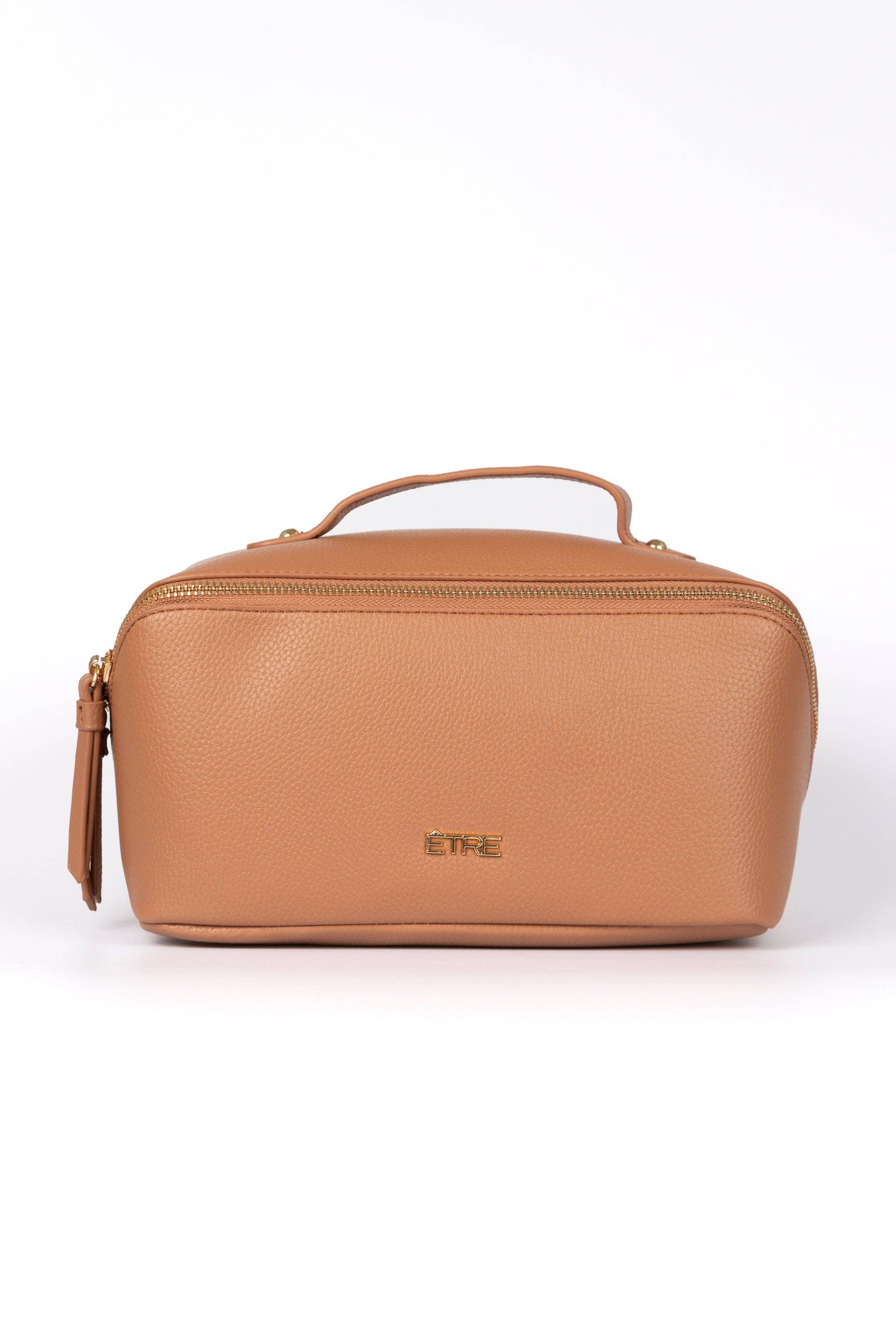 Perfect for travelling, cosmetics and toiletries. The Mila vanity case unfolds to reveal a spacious storage compartment. Featuring small internal pockets for organisation, this vanity case is ideal for travel. Crafted from pebbled faux leather and finished with a convenient top handle. Large storage compartment Inner pockets for storage Gold hardware.