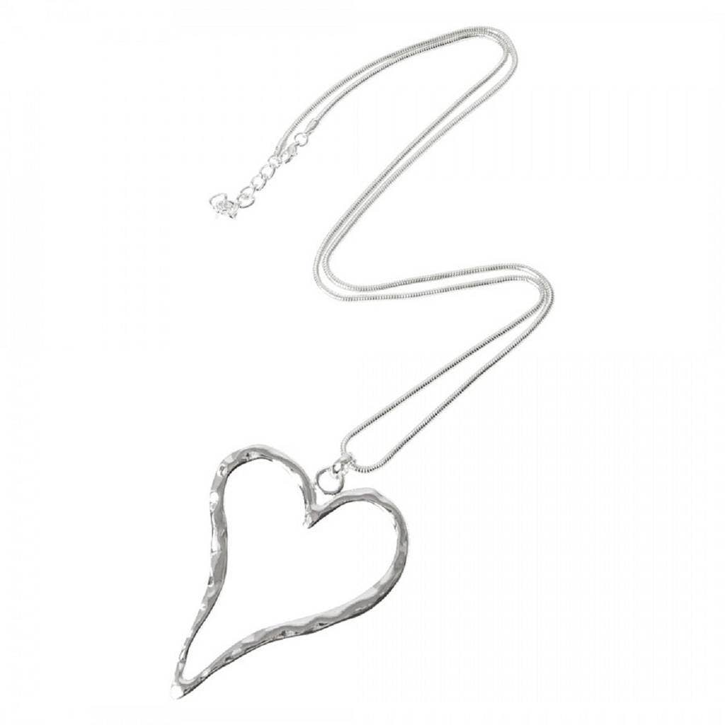 Lovely open heart long statement necklace. Dimensions: Heart: approx 7cm long x 6.5cm wide Chain length: approx 80cm Available in : Silver & Yellow Gold. Made from: Hypoallergenic metal alloy