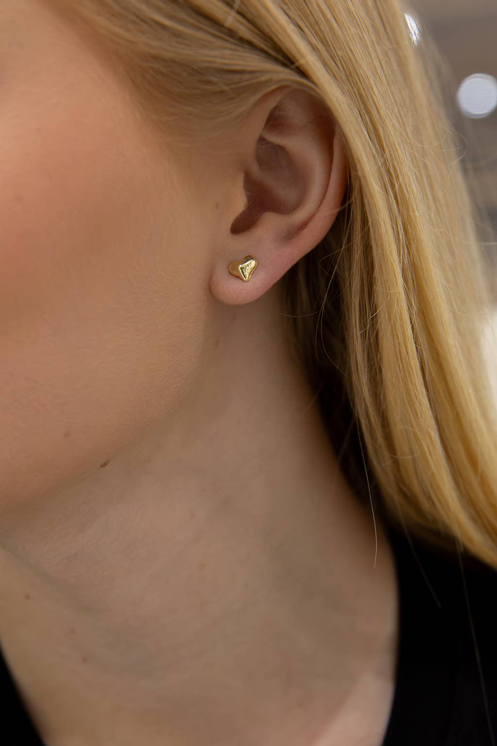 Raised heart earring in gold Made from zinc alloy Post back for pierced ears Hypo-allergenic (free from lead/nickel/cadmium) *Please note earrings are non-returnable unless they are faulty due to hygiene reasons