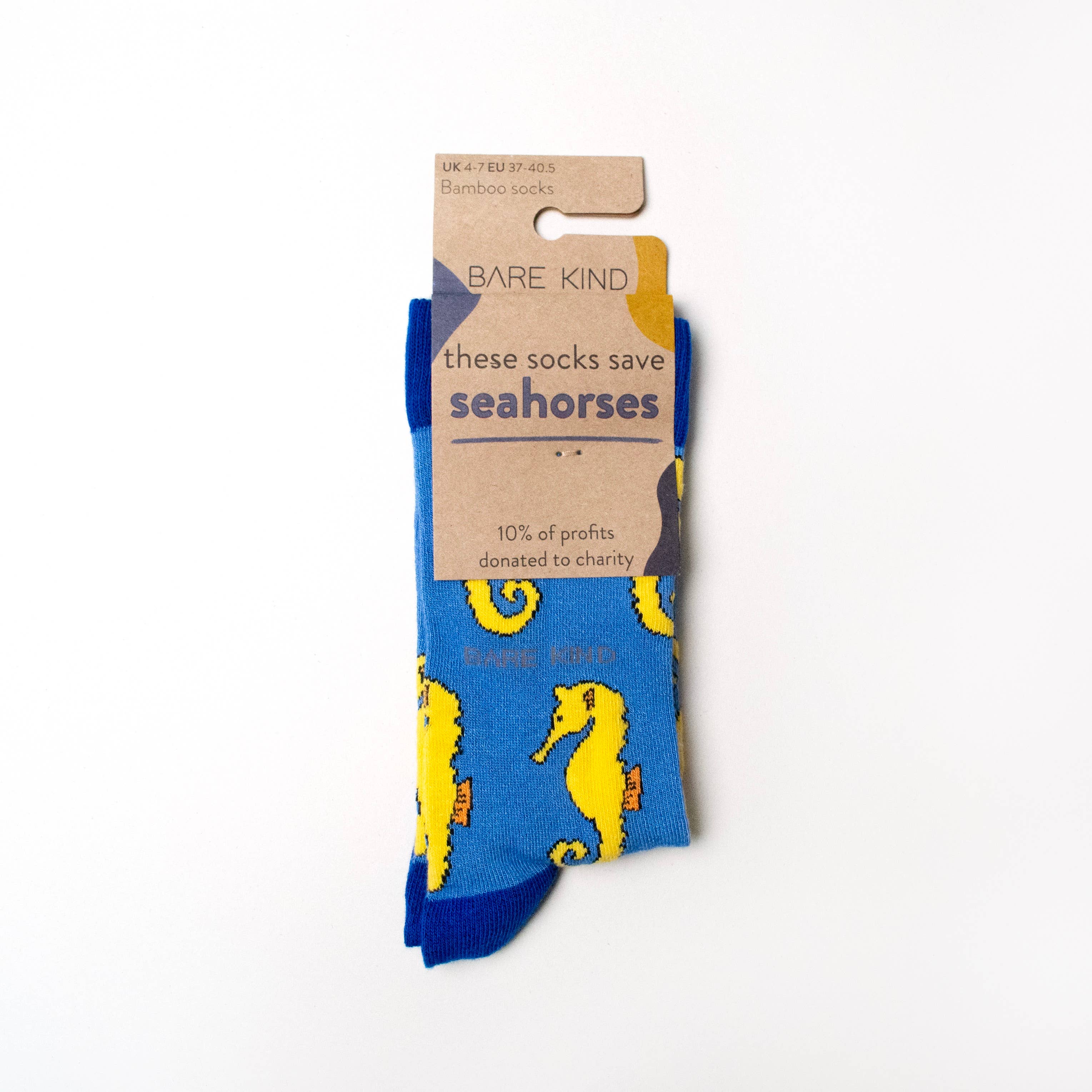 These Socks Save Seahorses. With 10% of profits donated to the Seahorse Trust Our socks are: * Thermoregulating (cool in summer, warm in winter) * Sweat-proof (moisture-wicking & anti-bacterial) * Softer than cotton * Wash cold for the environment (30 degrees) * OEKO-Tex Certified * SEDEX Audited * 100% Recyclable packaging