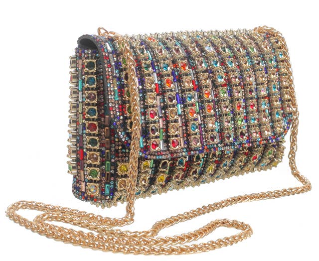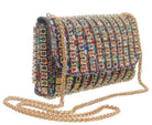 Studded Flap Over Ring Chain Evening Bag