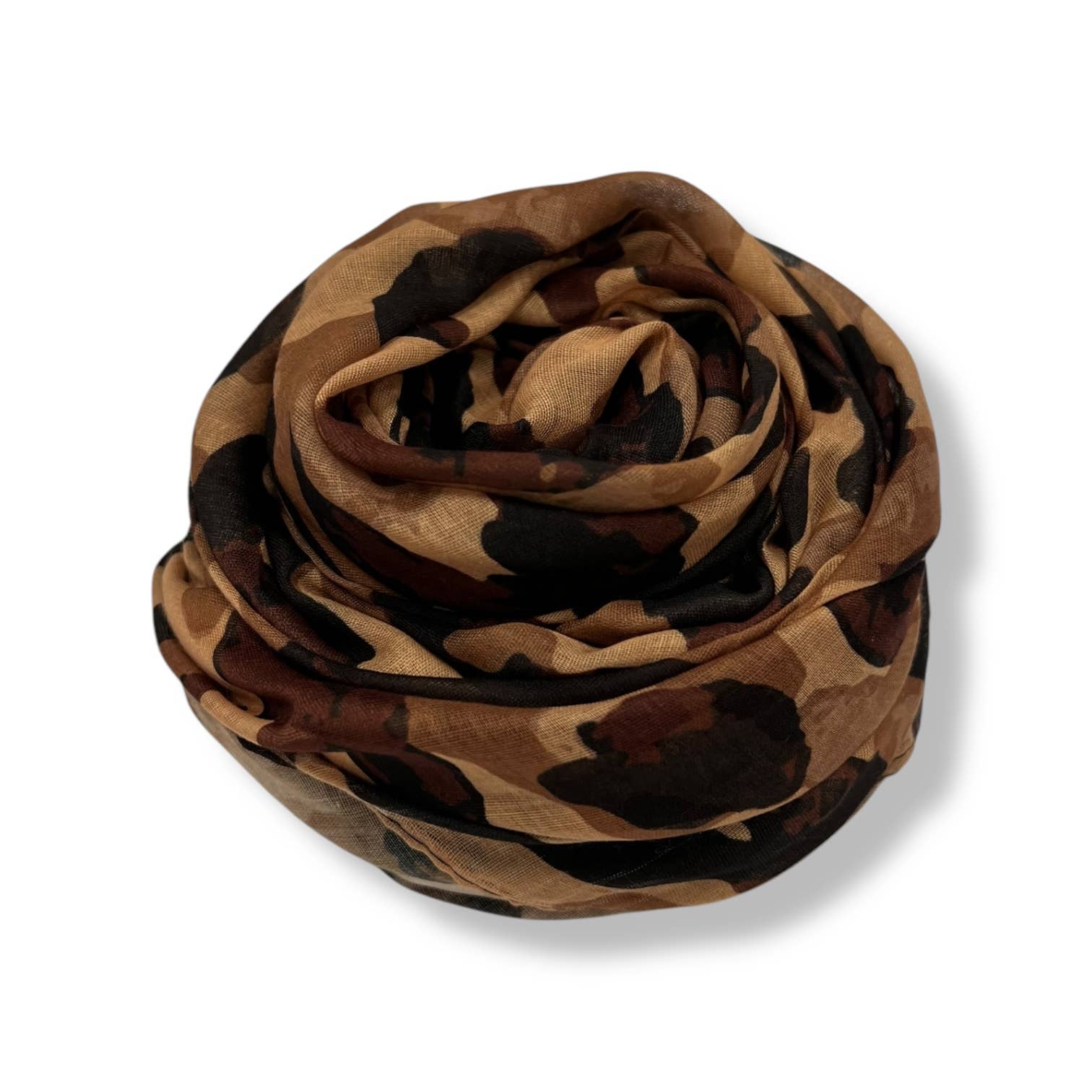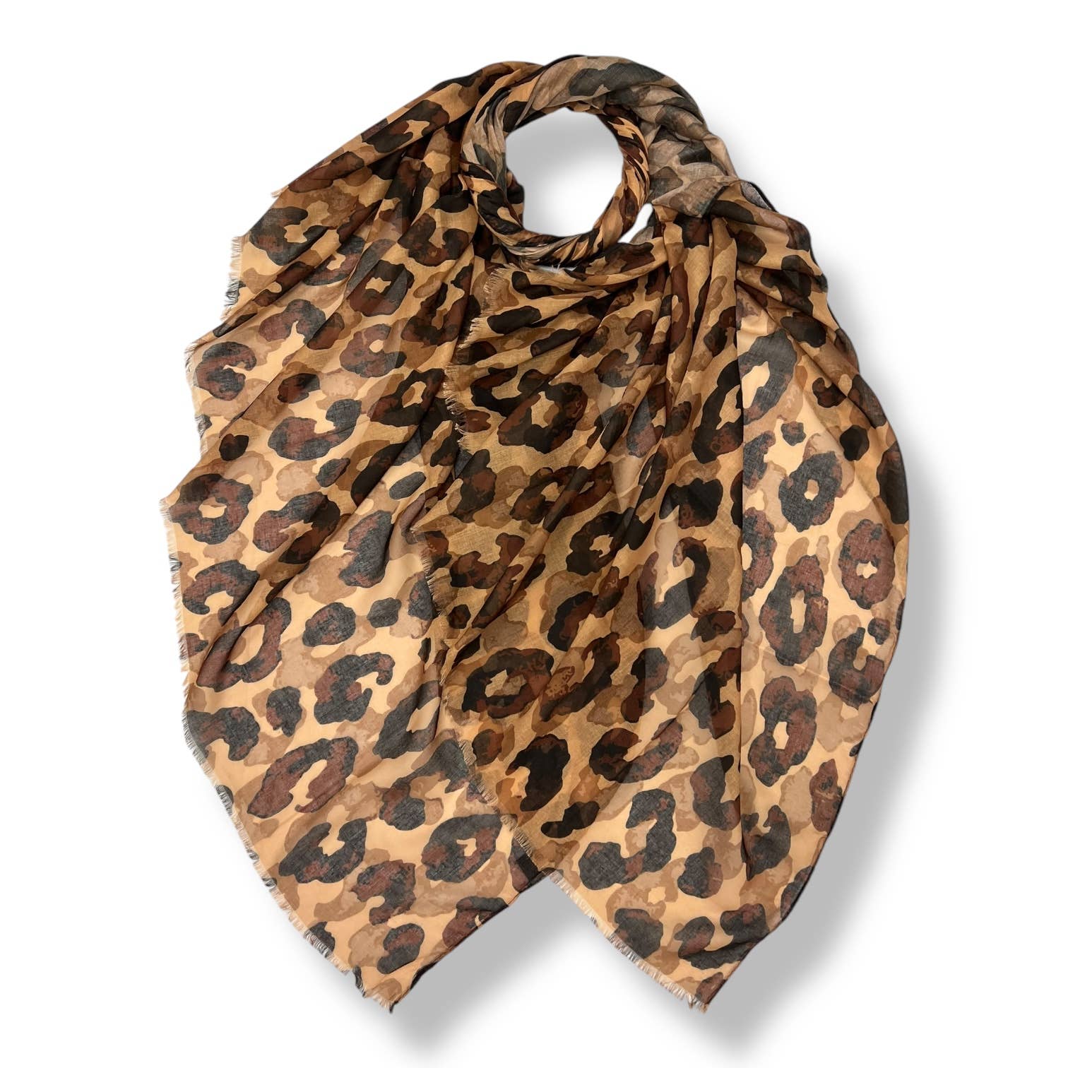 Summer colourful leopard print scarf, finished with fringes on each end. Measurement: 180cm by 85cm Composition: 50% Cotton, 50% Viscose Please note: The actual colour of the images may appear different from the picture shown on the website due to difference screen settings, camera light or/and personal vision ability.