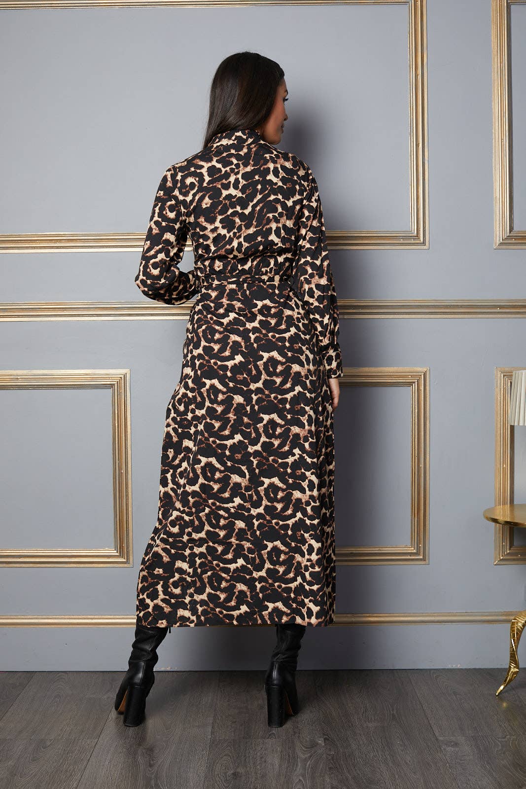 Elevate your style with our chic leopard print button-down wrap dress. Crafted from soft, satin-like polyester, this dress has a luxurious feel and a gorgeous drape. It features a self-fabric belt for a defined waist and a flattering wrap style that suits every body shape. Midi-length, this dress is versatile and perfect for any occasion, from work to weekend outings. Available in a range of sizes from XS to 3XL, it’s designed to make every woman feel confident and stylish. 100% Polyester Satin